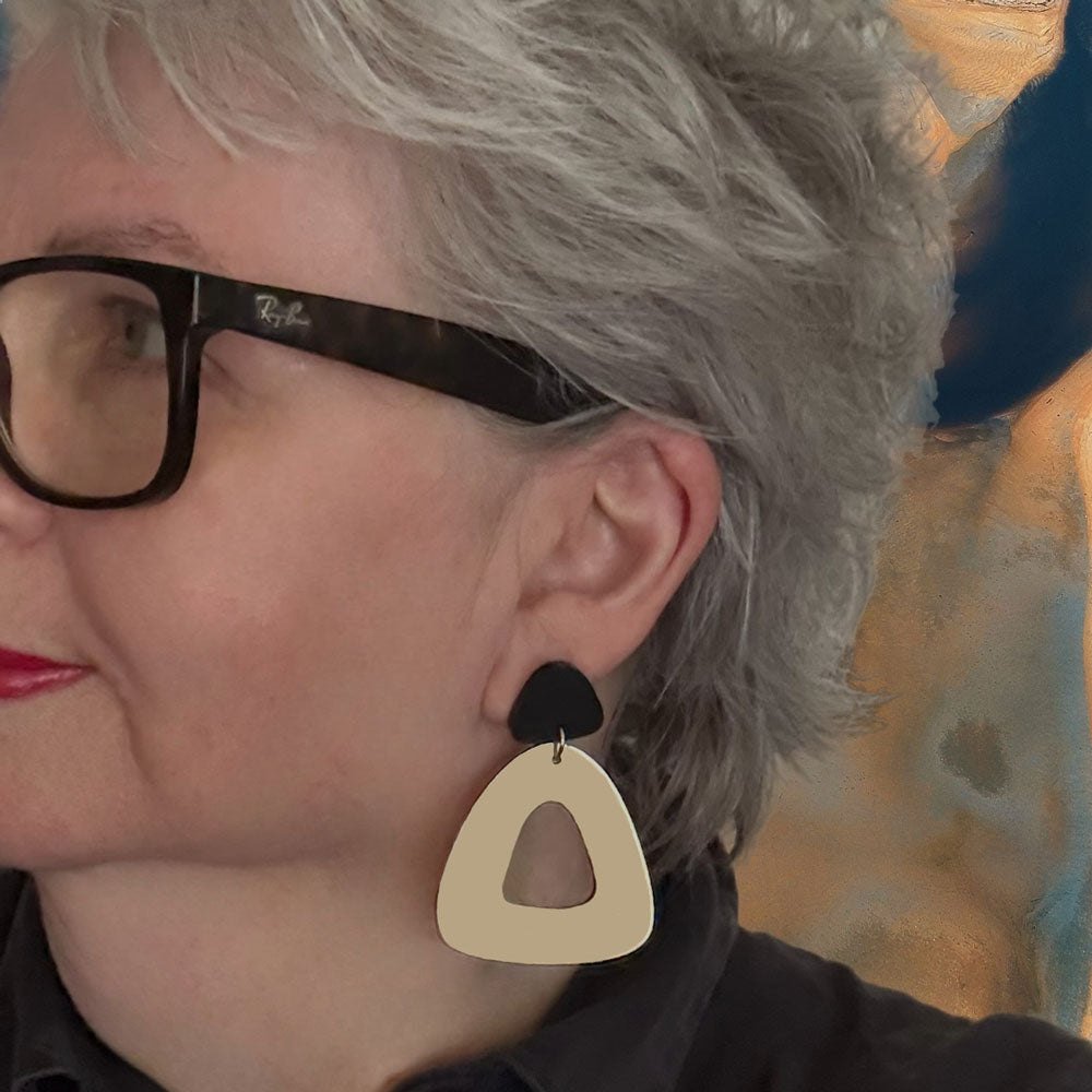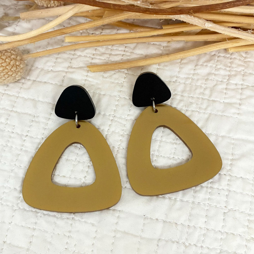 Fabulous organic triangular earrings in gold and matt black. So stylish and simple that you will love wearing. Only one pair made in this colour.